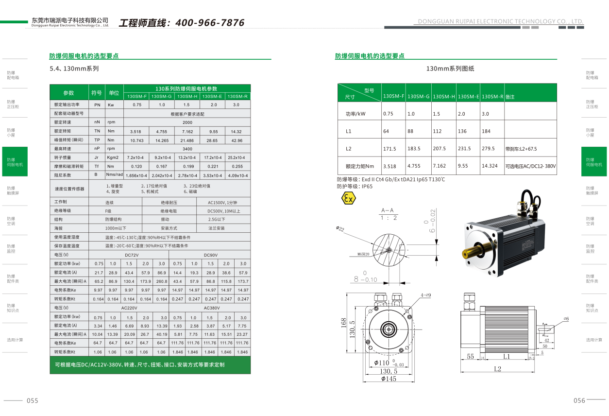 广东防爆伺服电机130系列0.75KW/1KW/1.5KW/2KW粉尘气体防爆应用液压设备