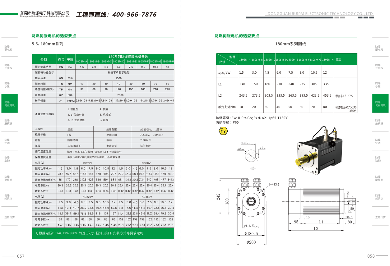 广东180系列防爆伺服电机5.5KW/7.5KW/10KW IIBT4/IICT4粉尘气体防爆
